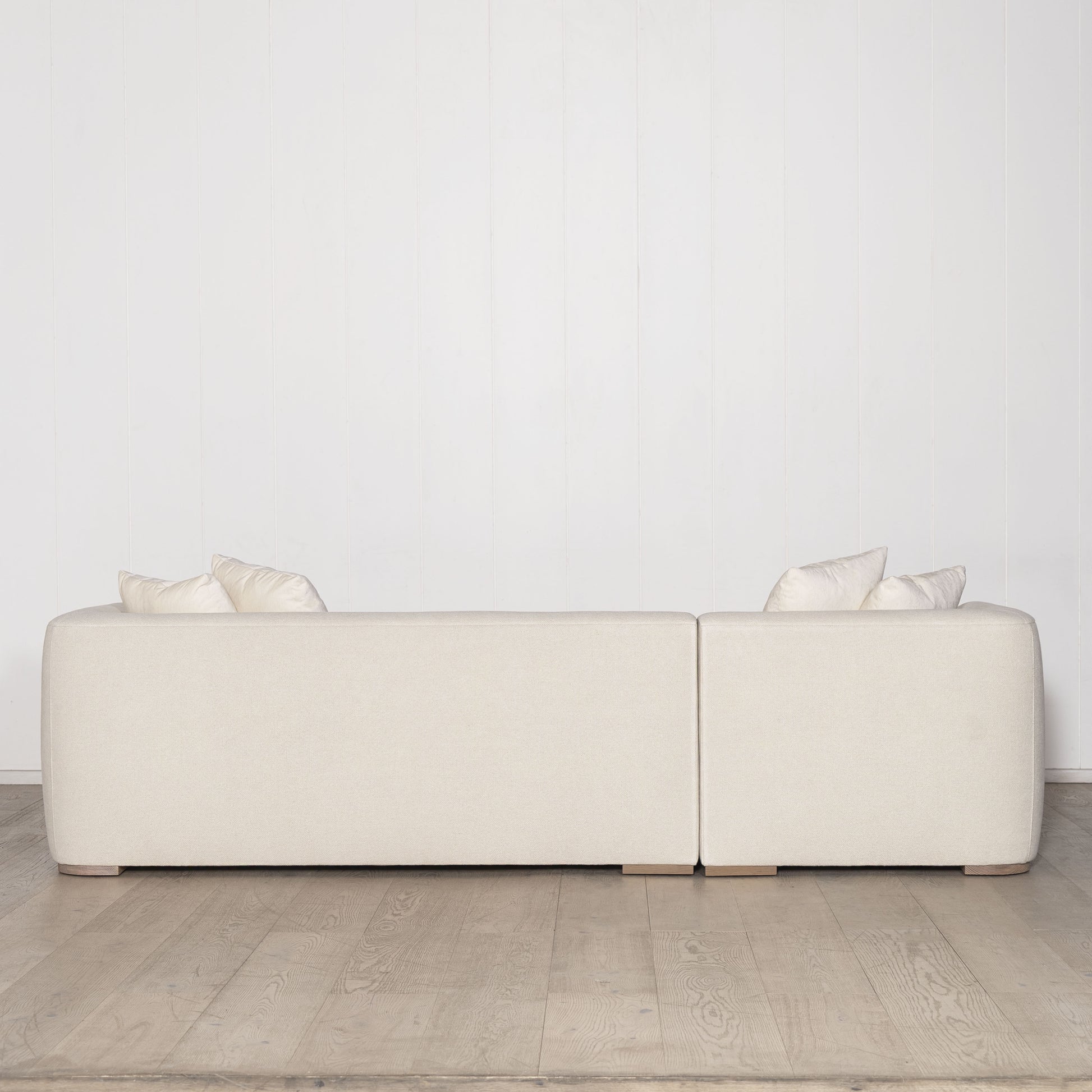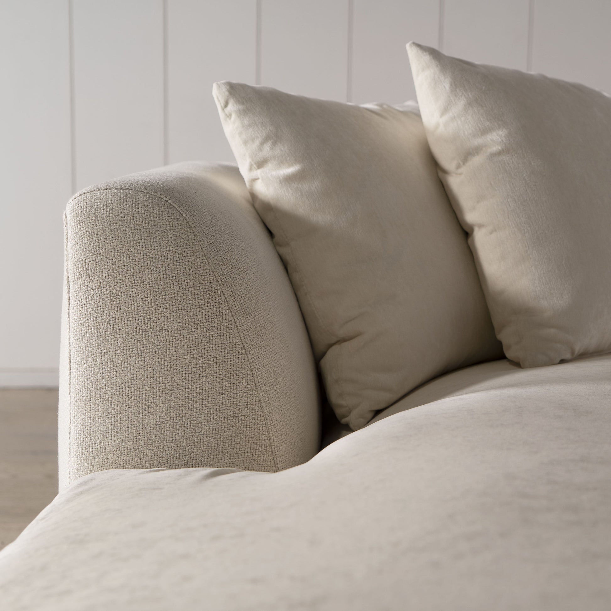 Variante(s) en vedette : Revêtement en tissu COM avec coussins d'assise et oreillers Lincoln Parchment. Dernière variante présentée en bleu ciel belge.