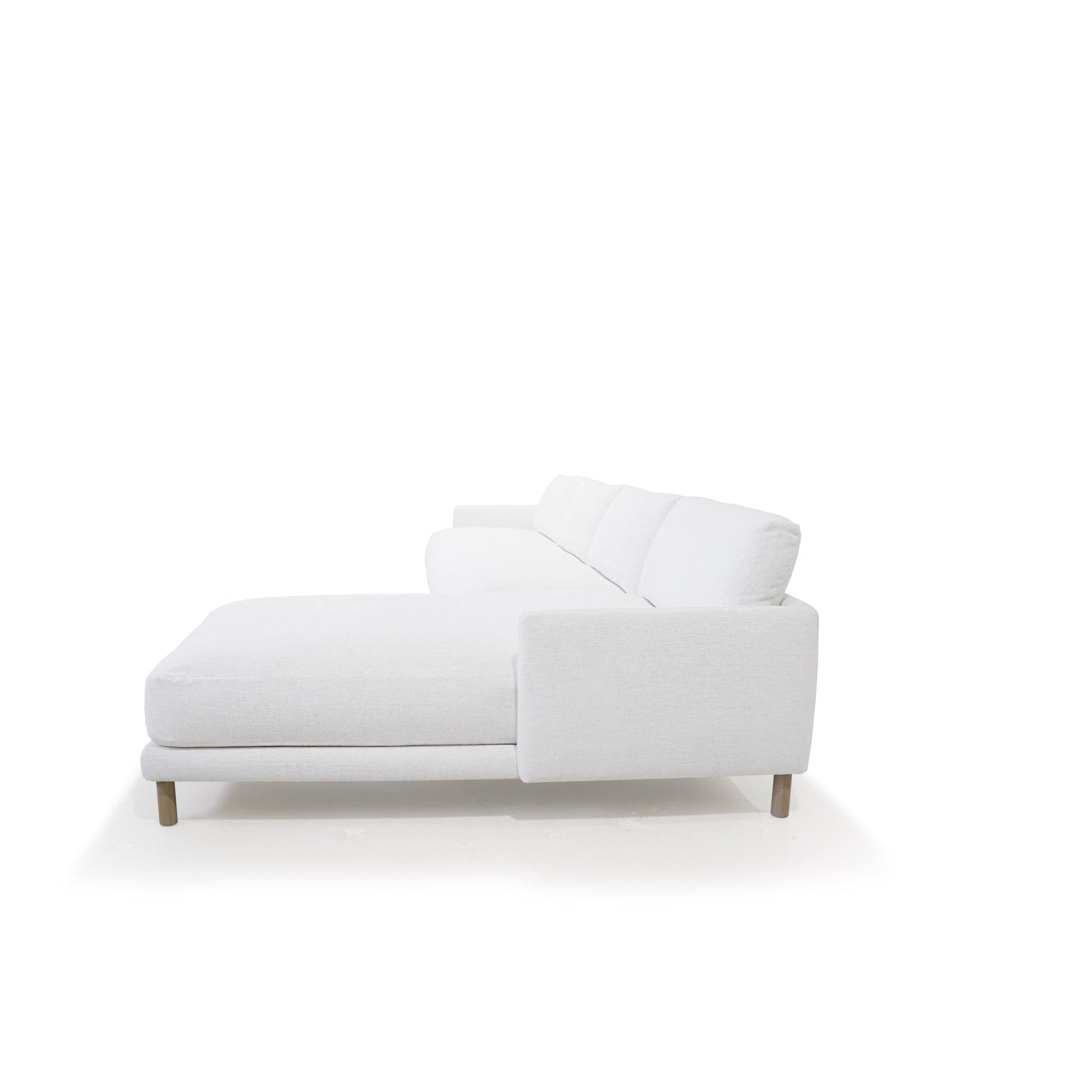 Variante(s) en vedette : Présenté avec une chaise longue droite recouverte de Nomad Snow, pieds en chêne finis en beige antique (finition abandonnée)