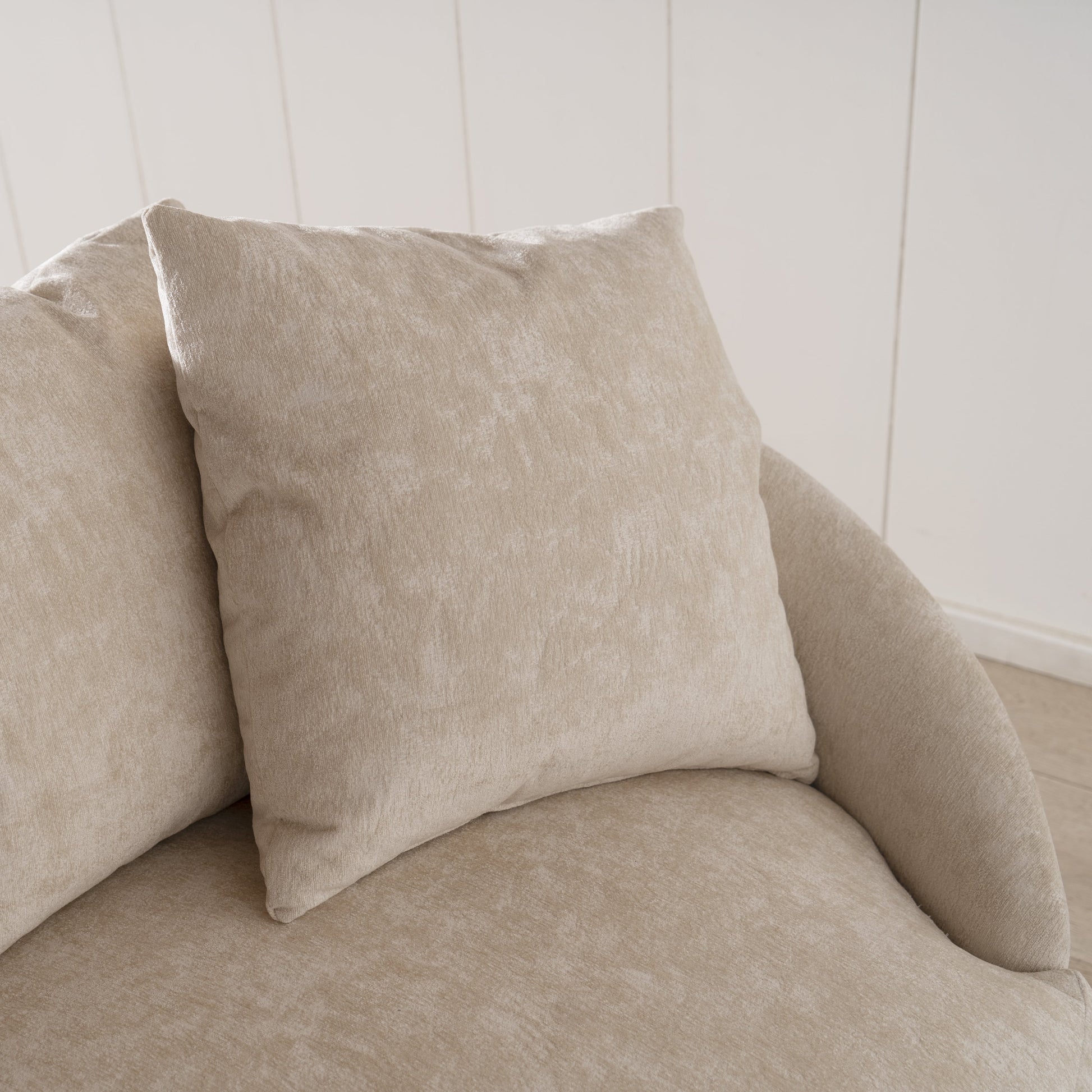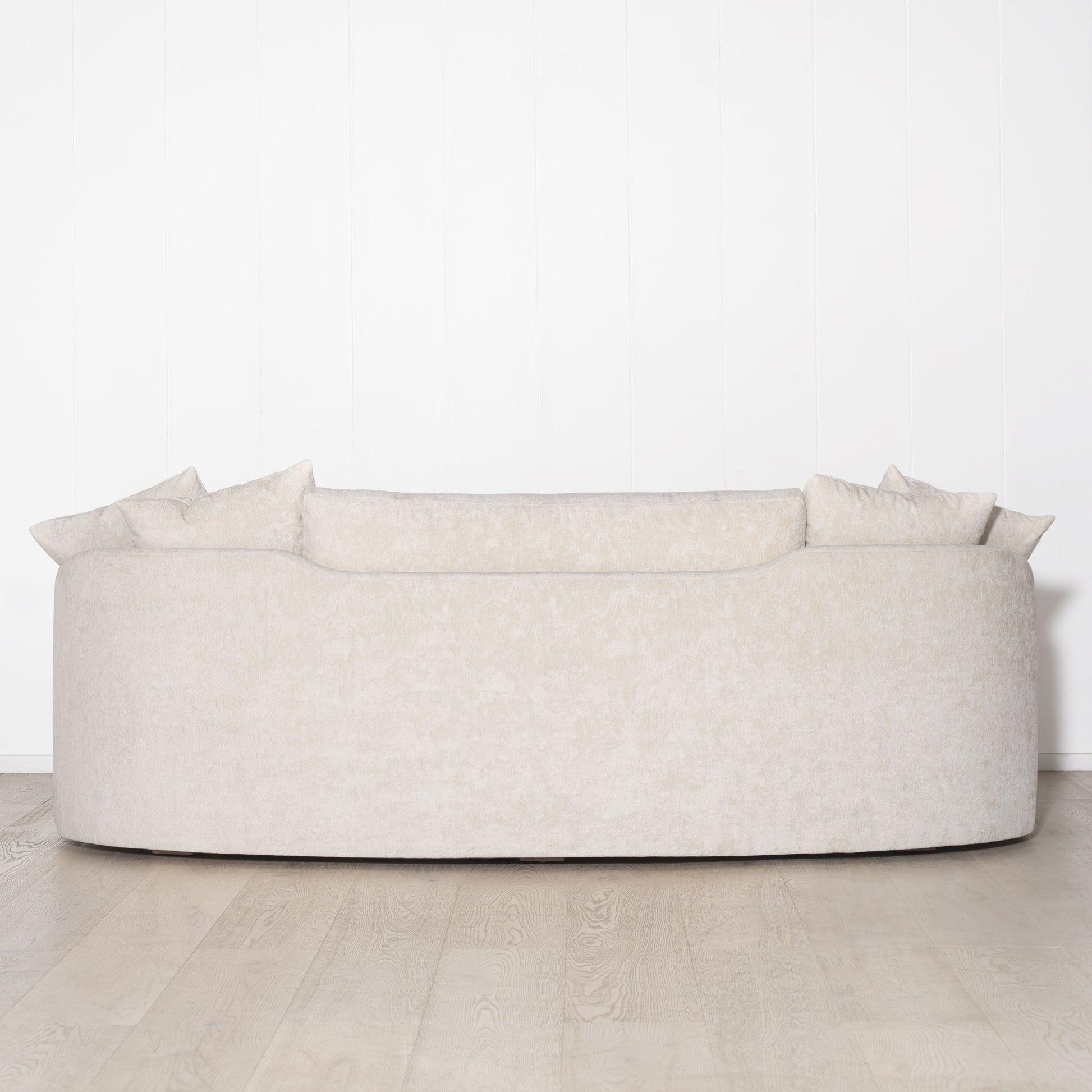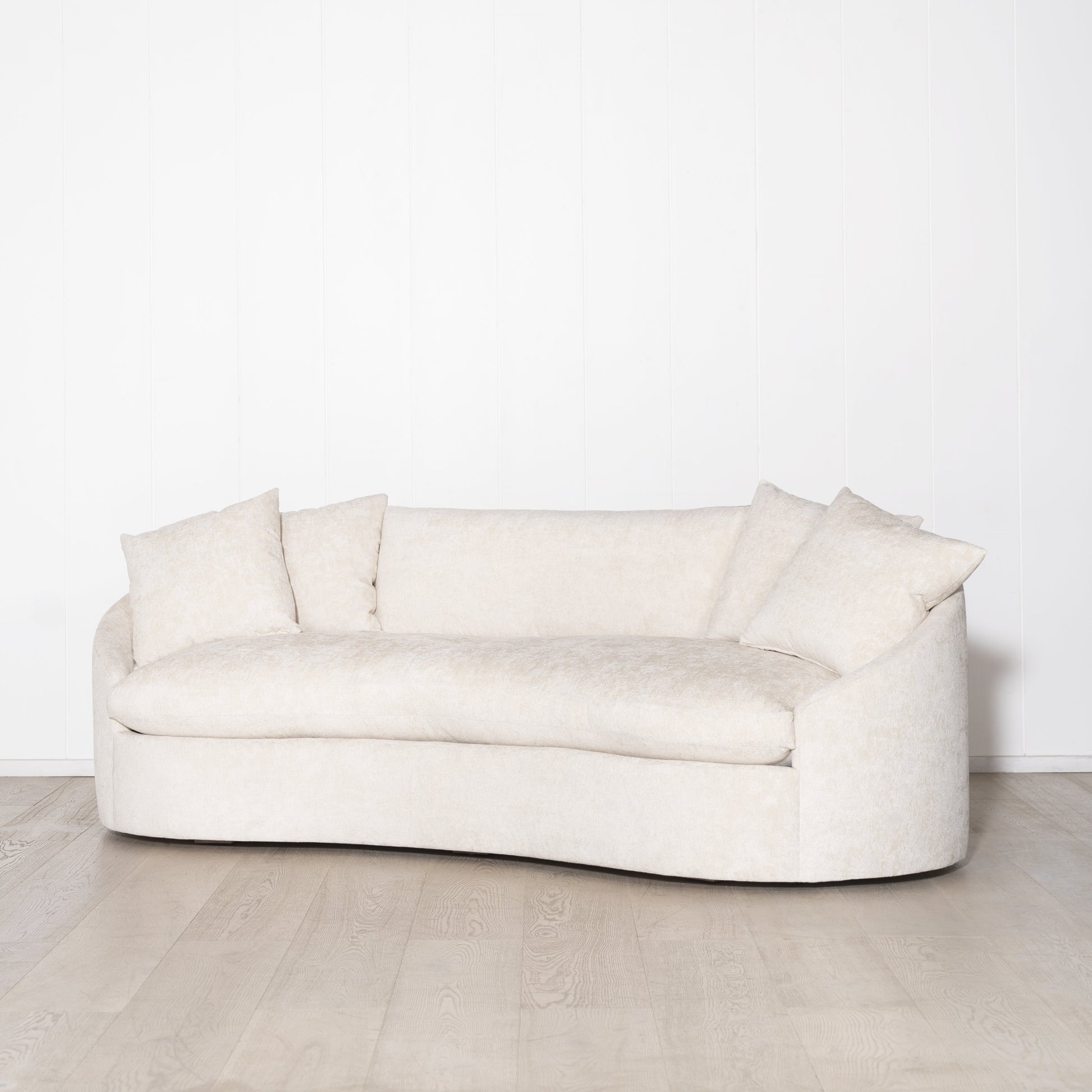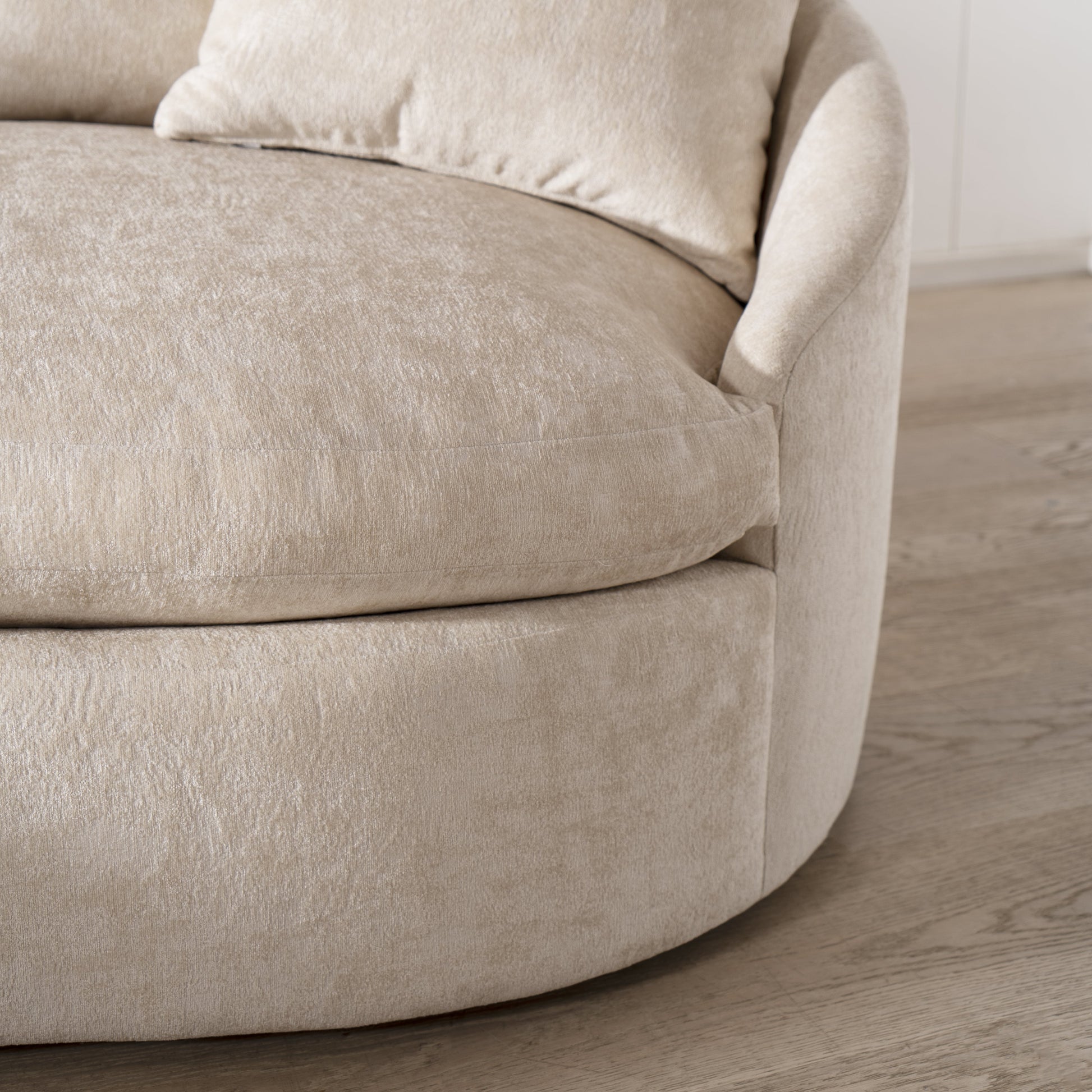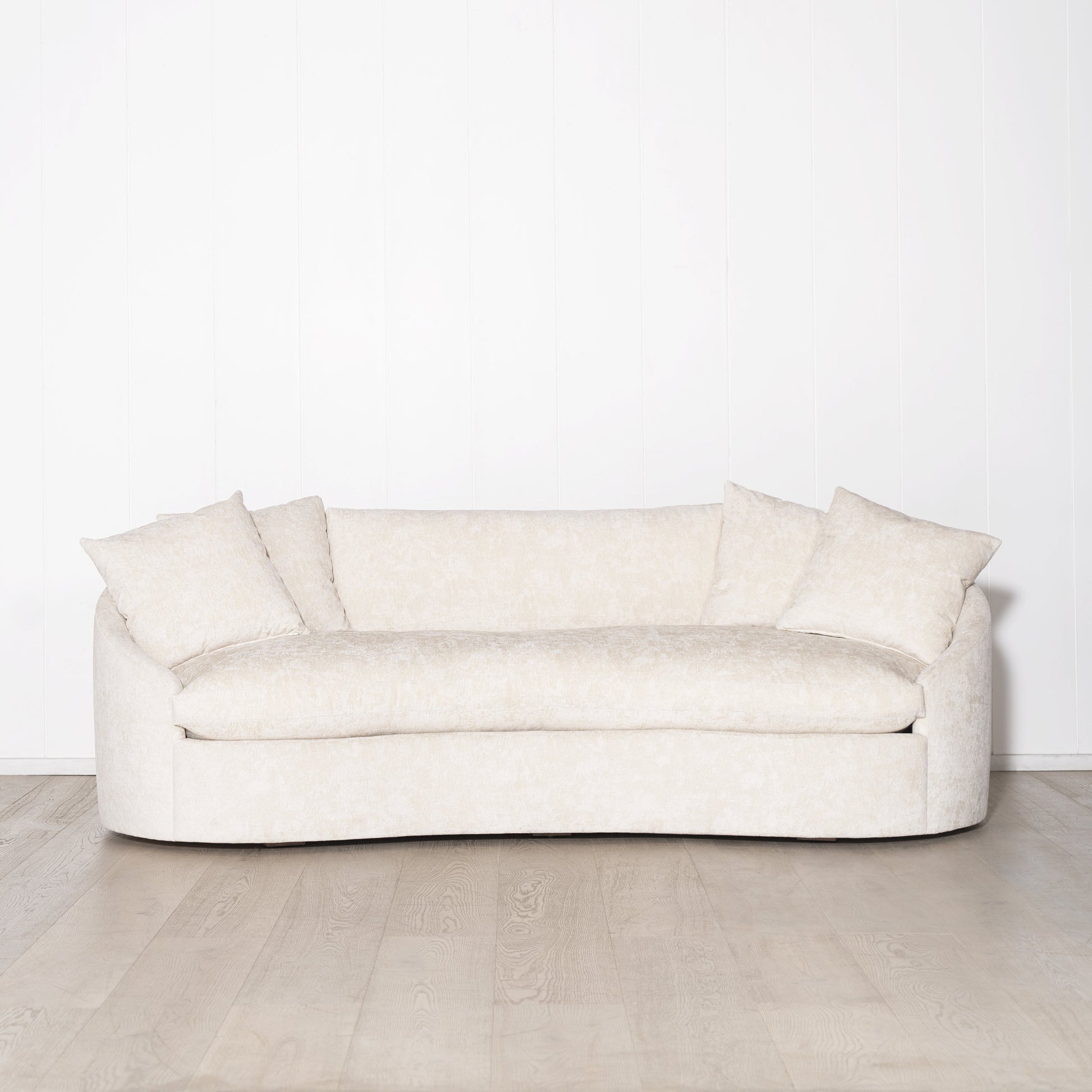 Variante(s) en vedette : Présenté en Zion Custard rembourré, pieds en chêne finis en naturel.