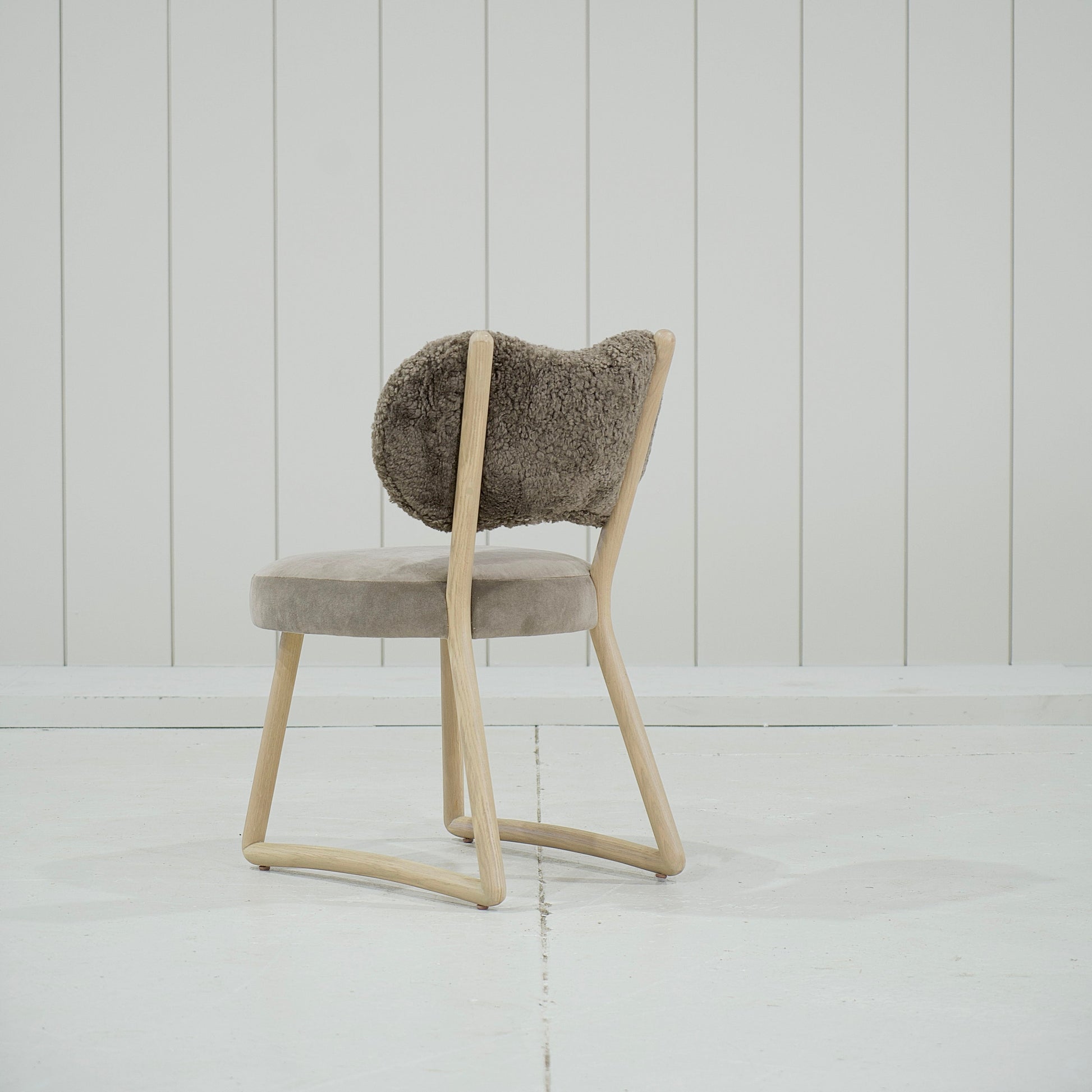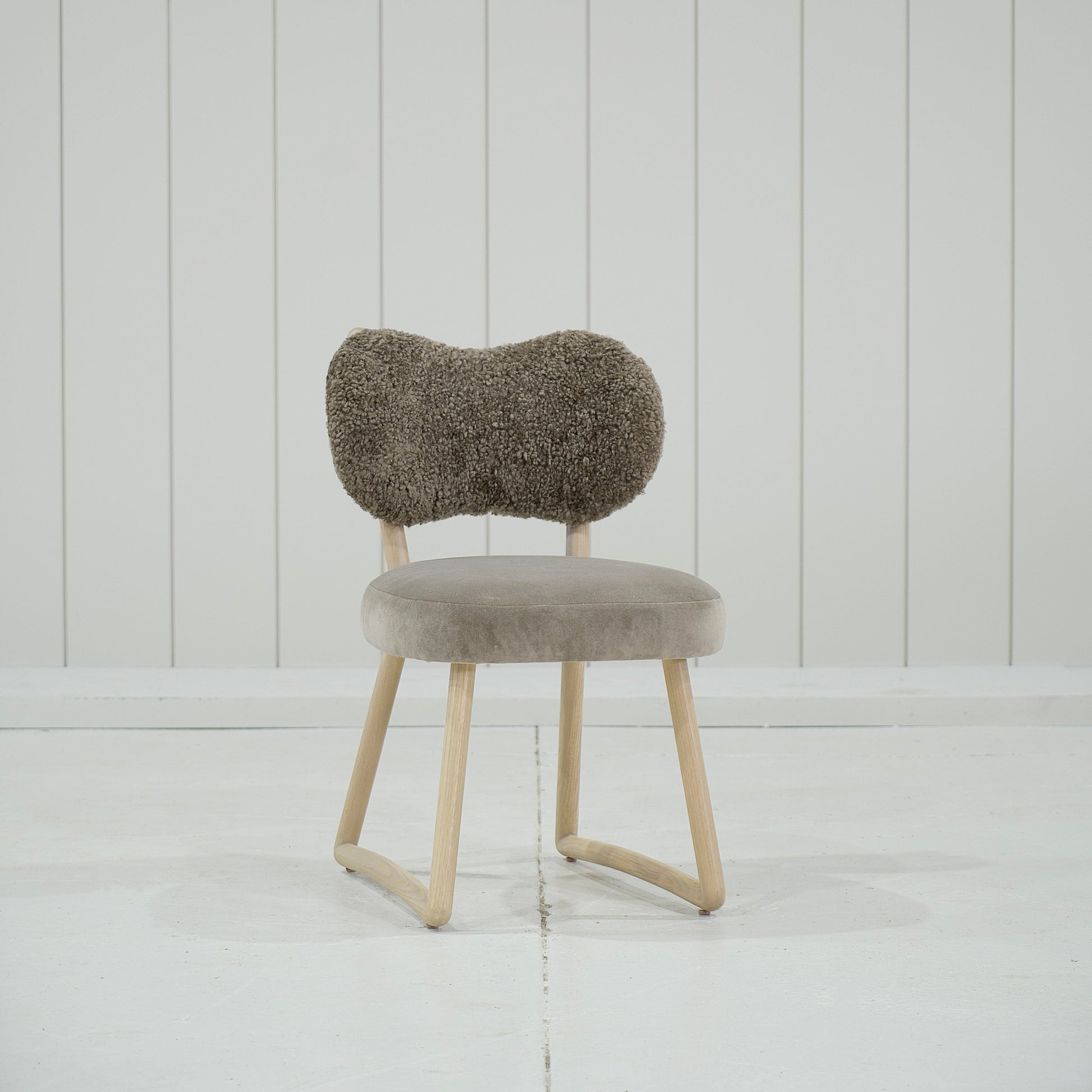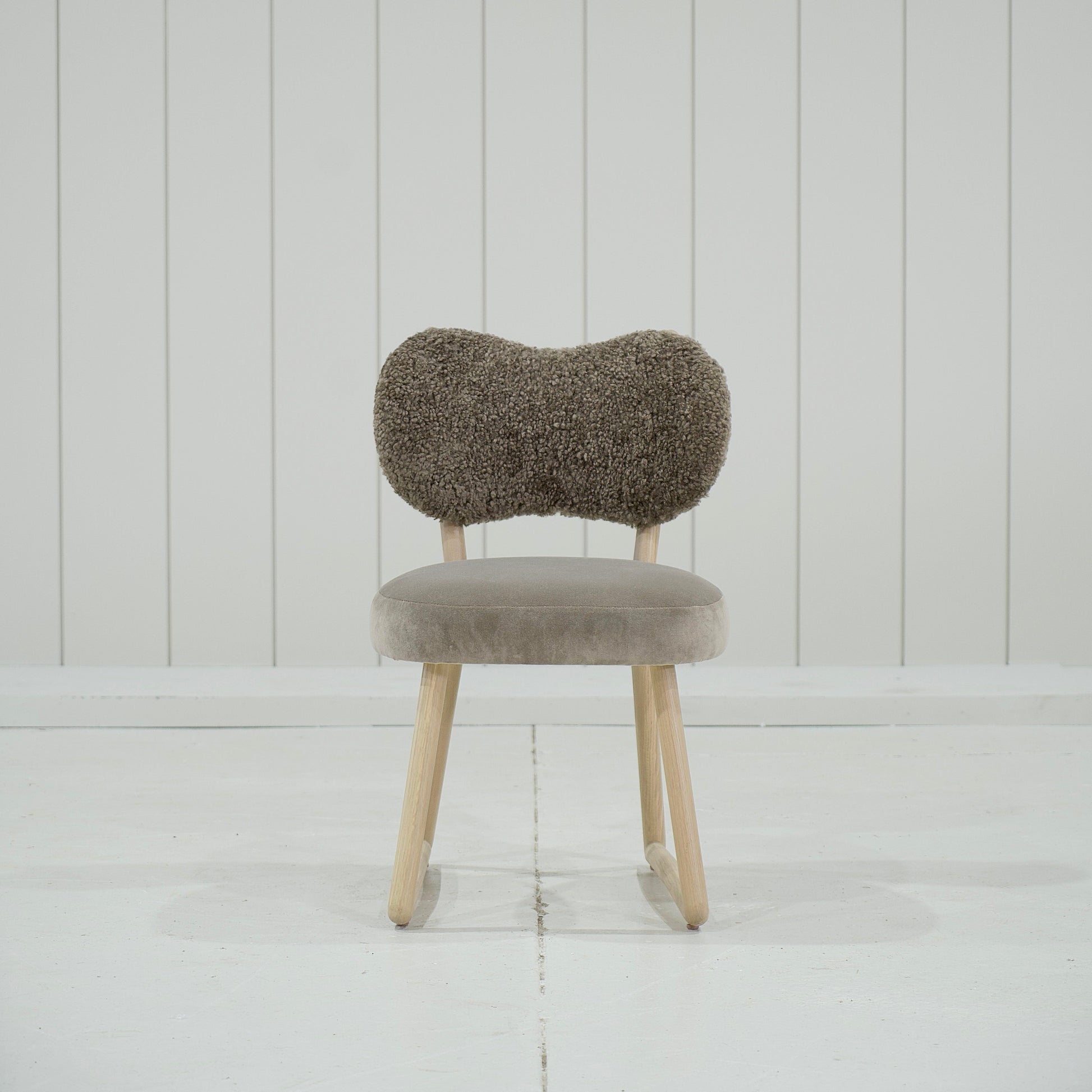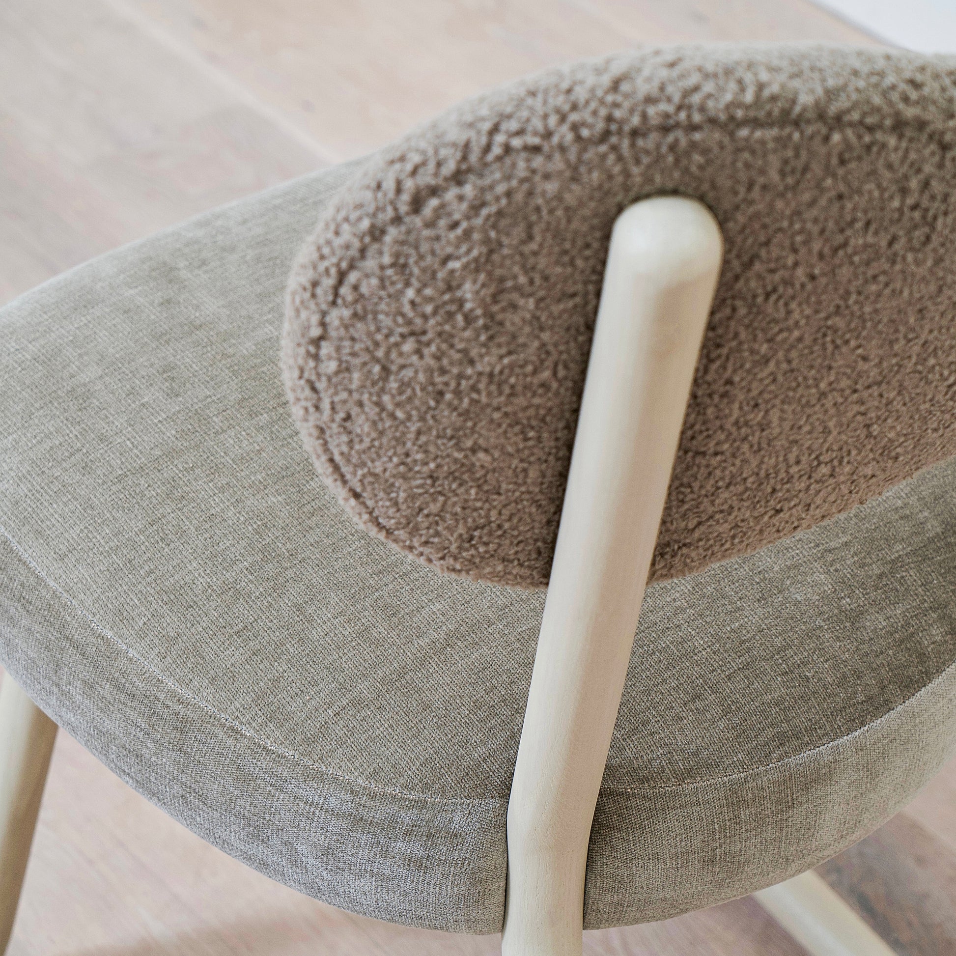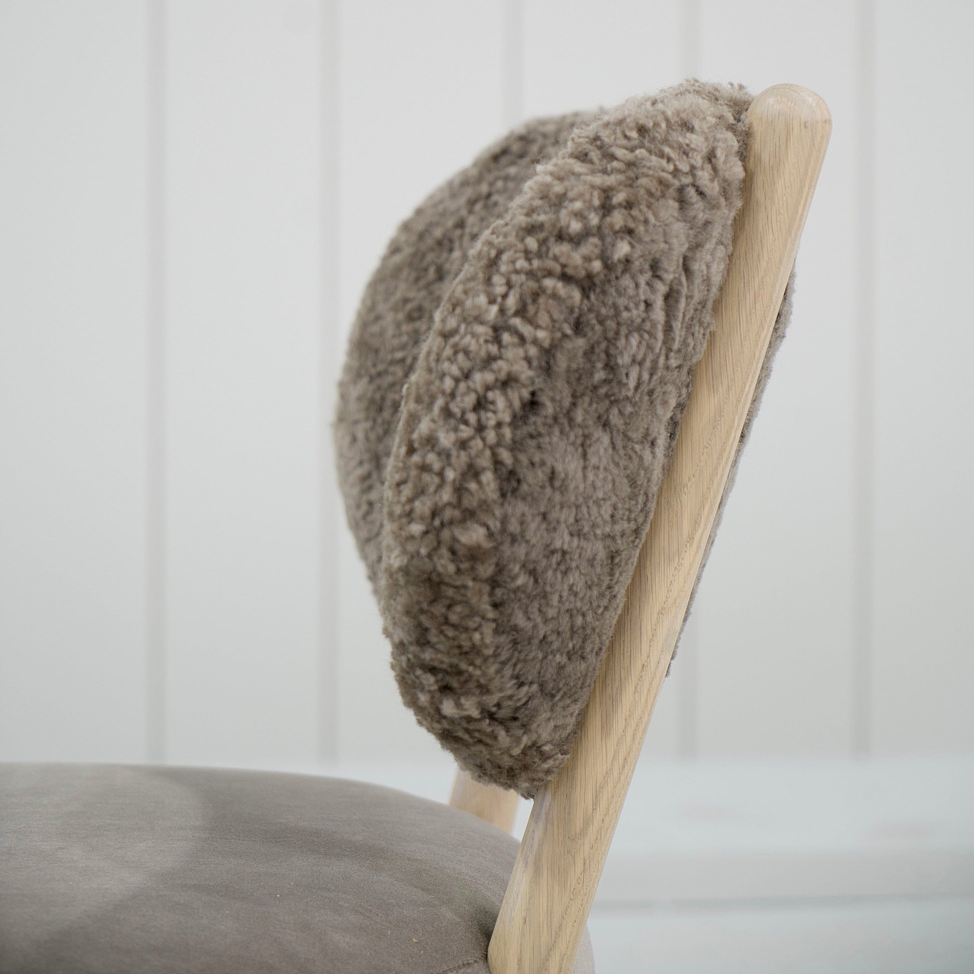 Variante 2 - Hastings Mushroom Shearling (dossier) et Sky Taupe (assise) + finition naturelle *hauteur personnalisée