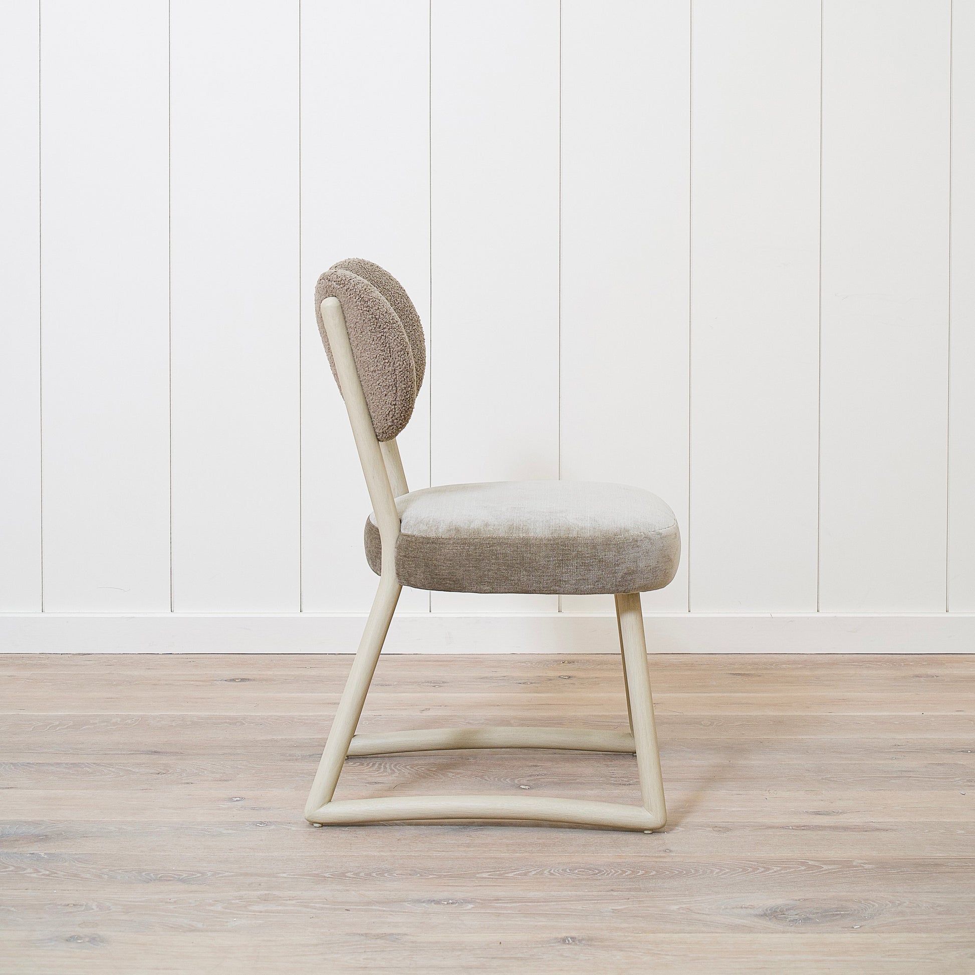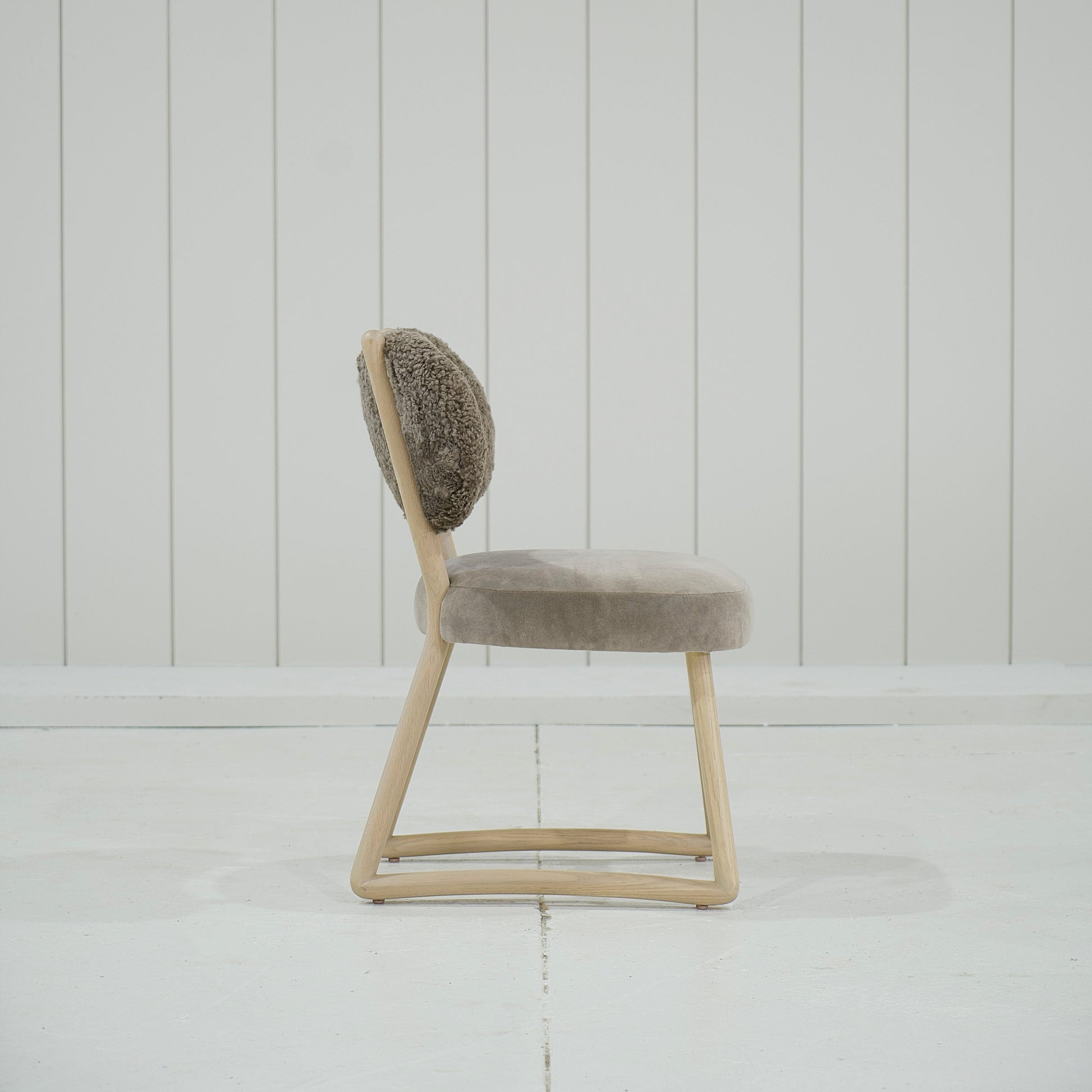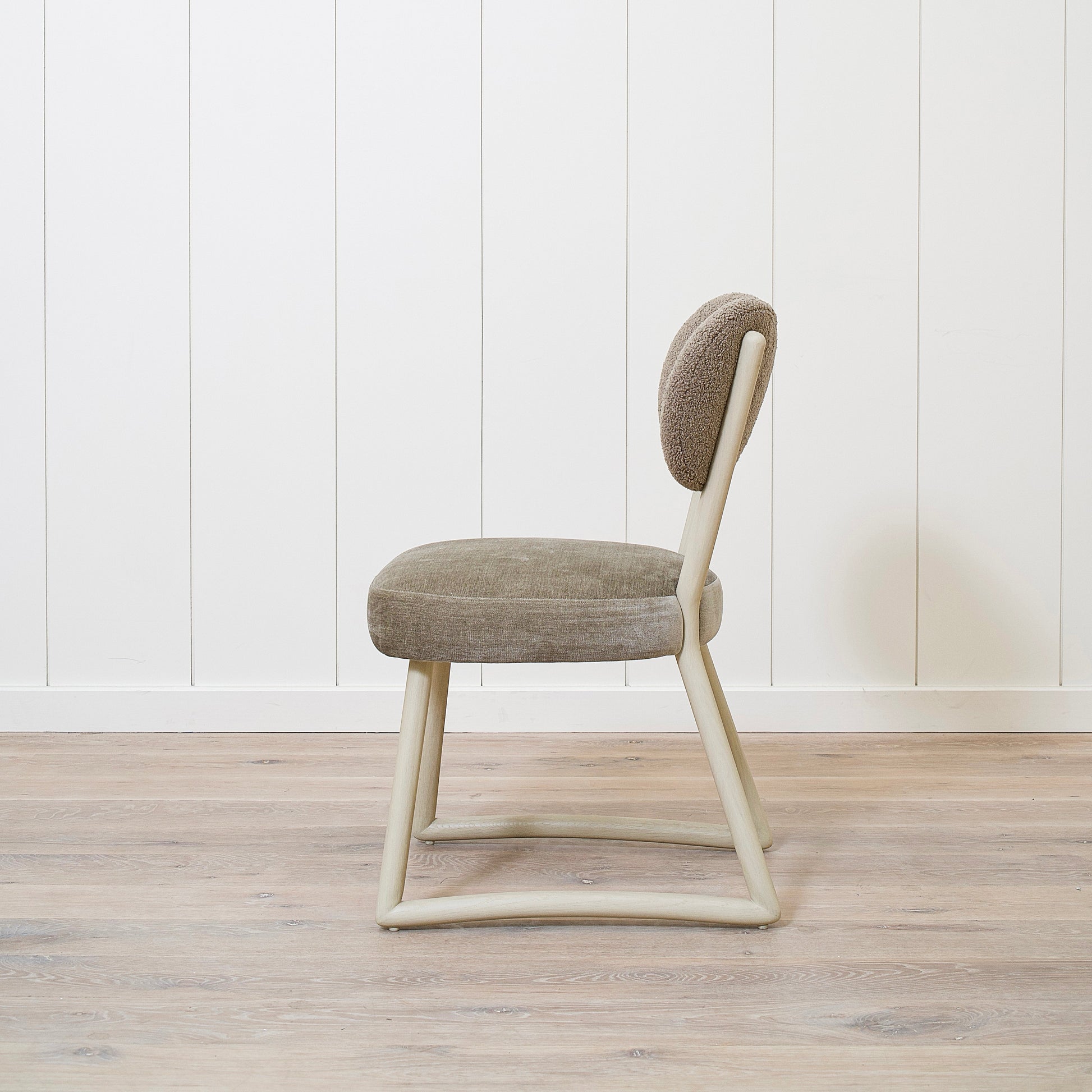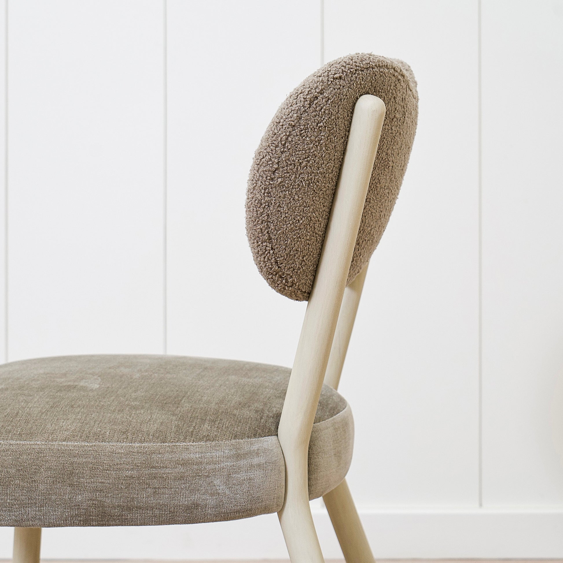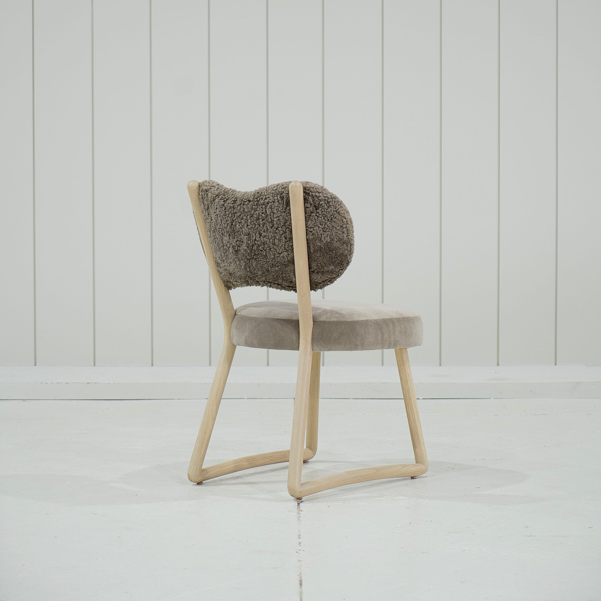 Variante 2 - Hastings Mushroom Shearling (dossier) et Sky Taupe (assise) + finition naturelle *hauteur personnalisée