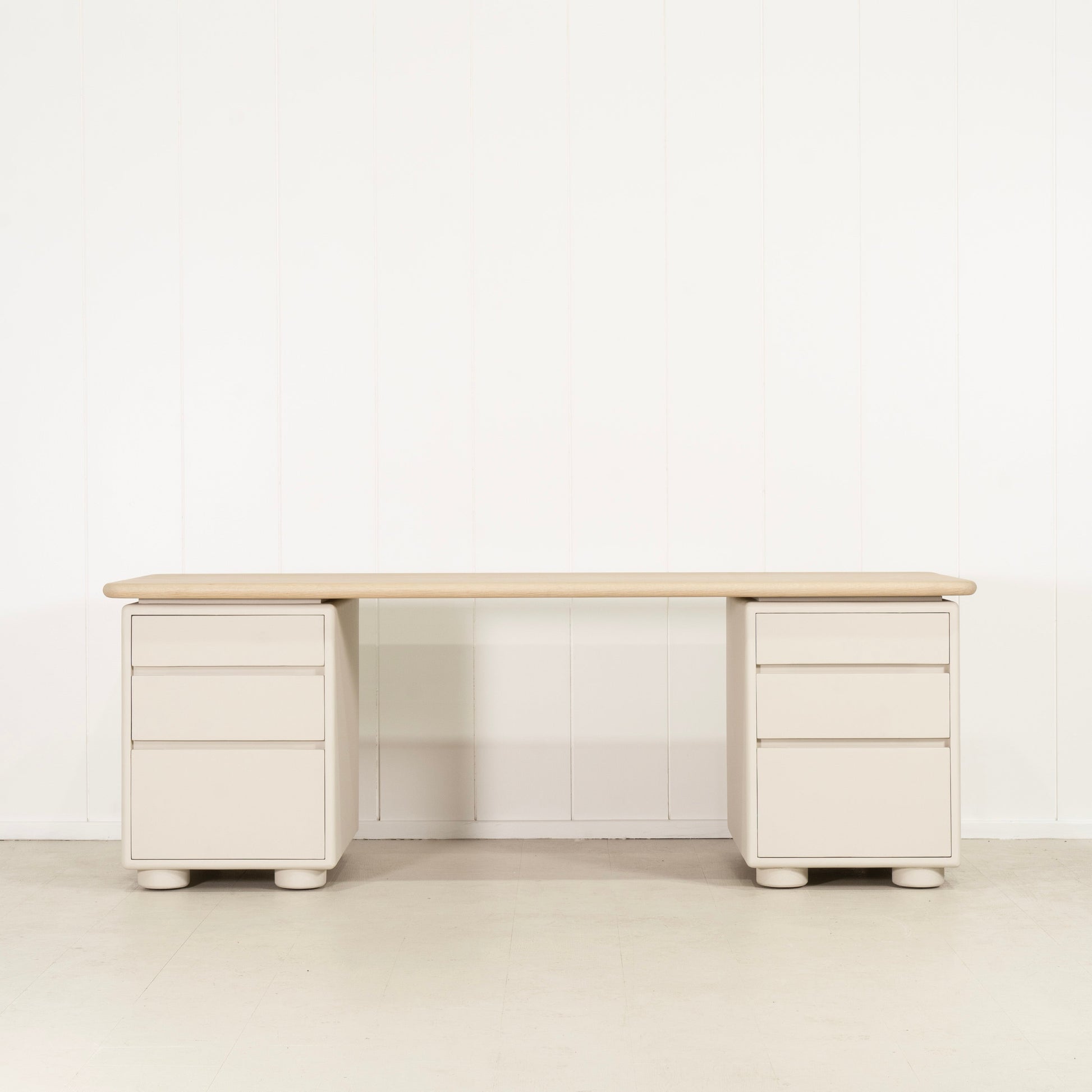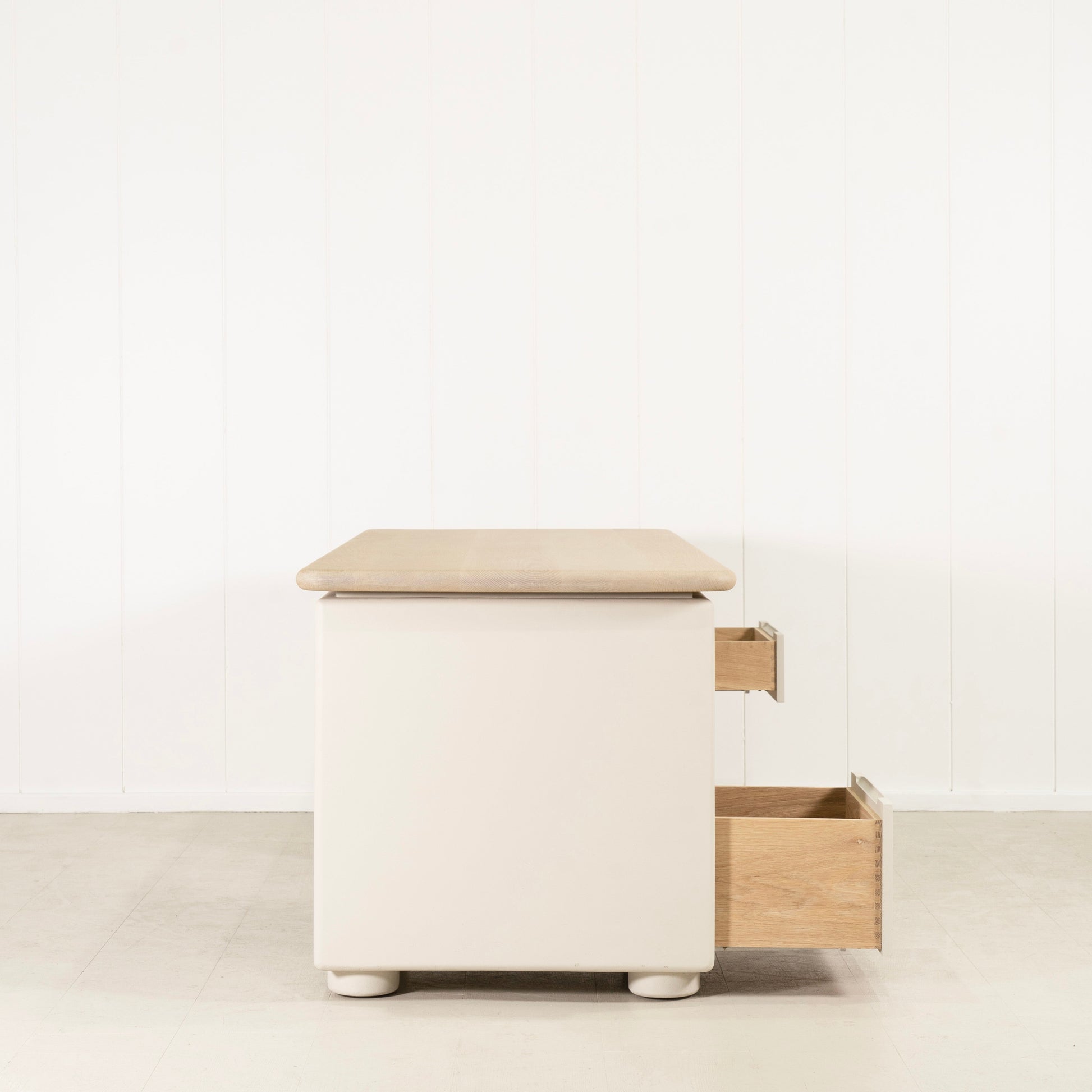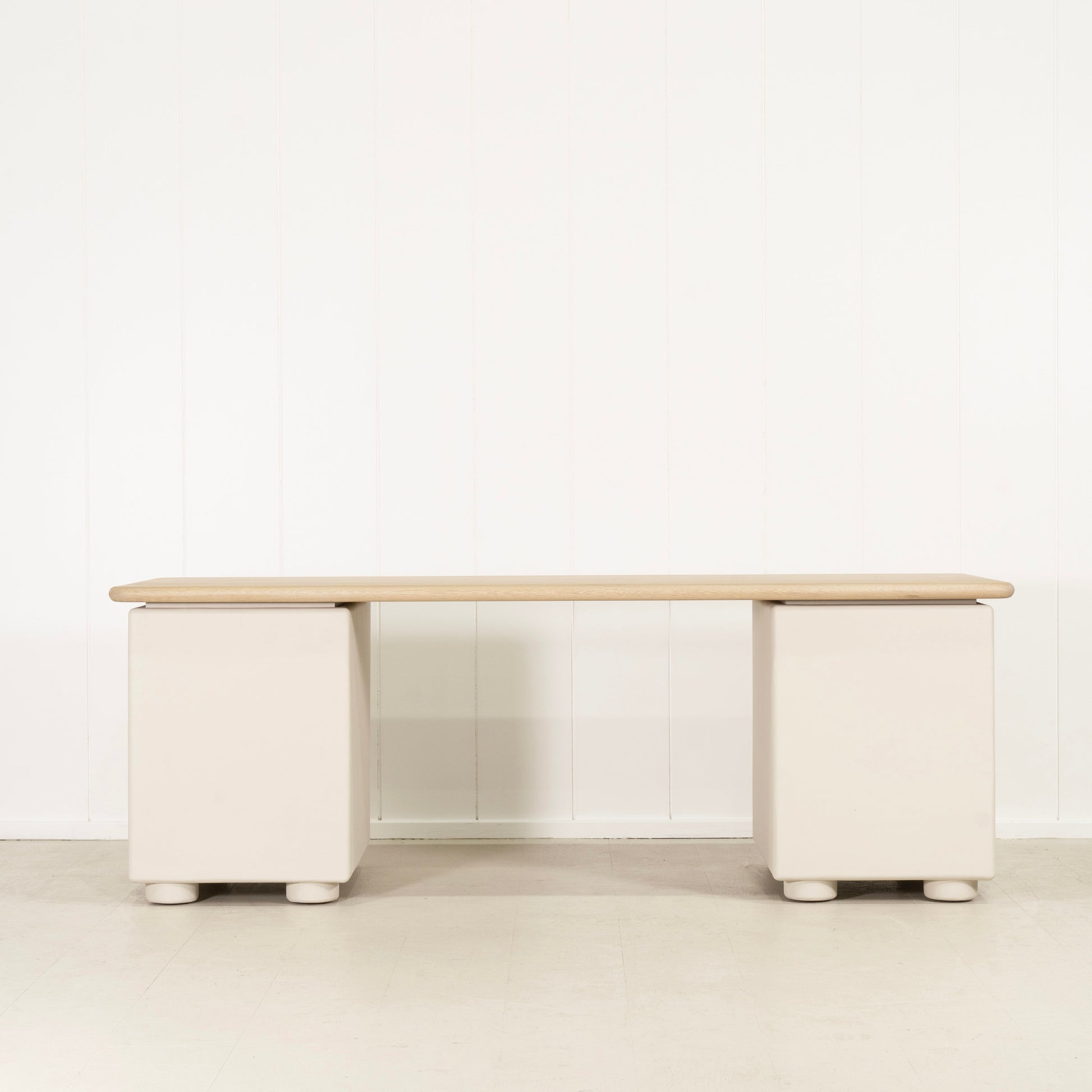 Variante 1 - Blanc plage (dessus) en chêne massif avec bord arrondi, plâtre calcaire (base) en étain Revere