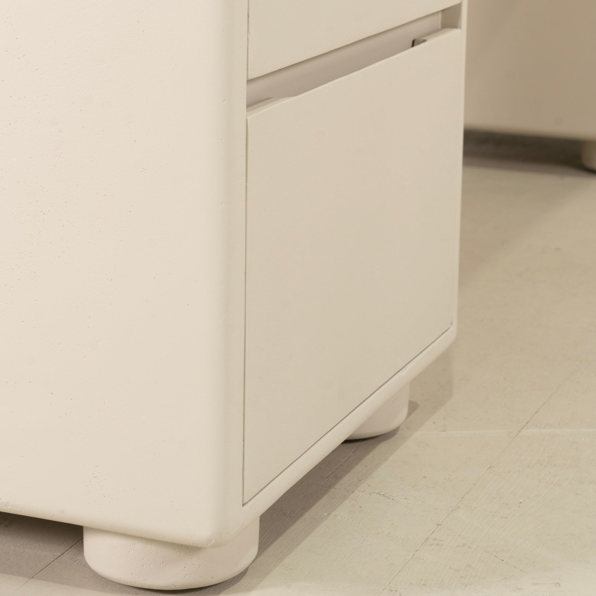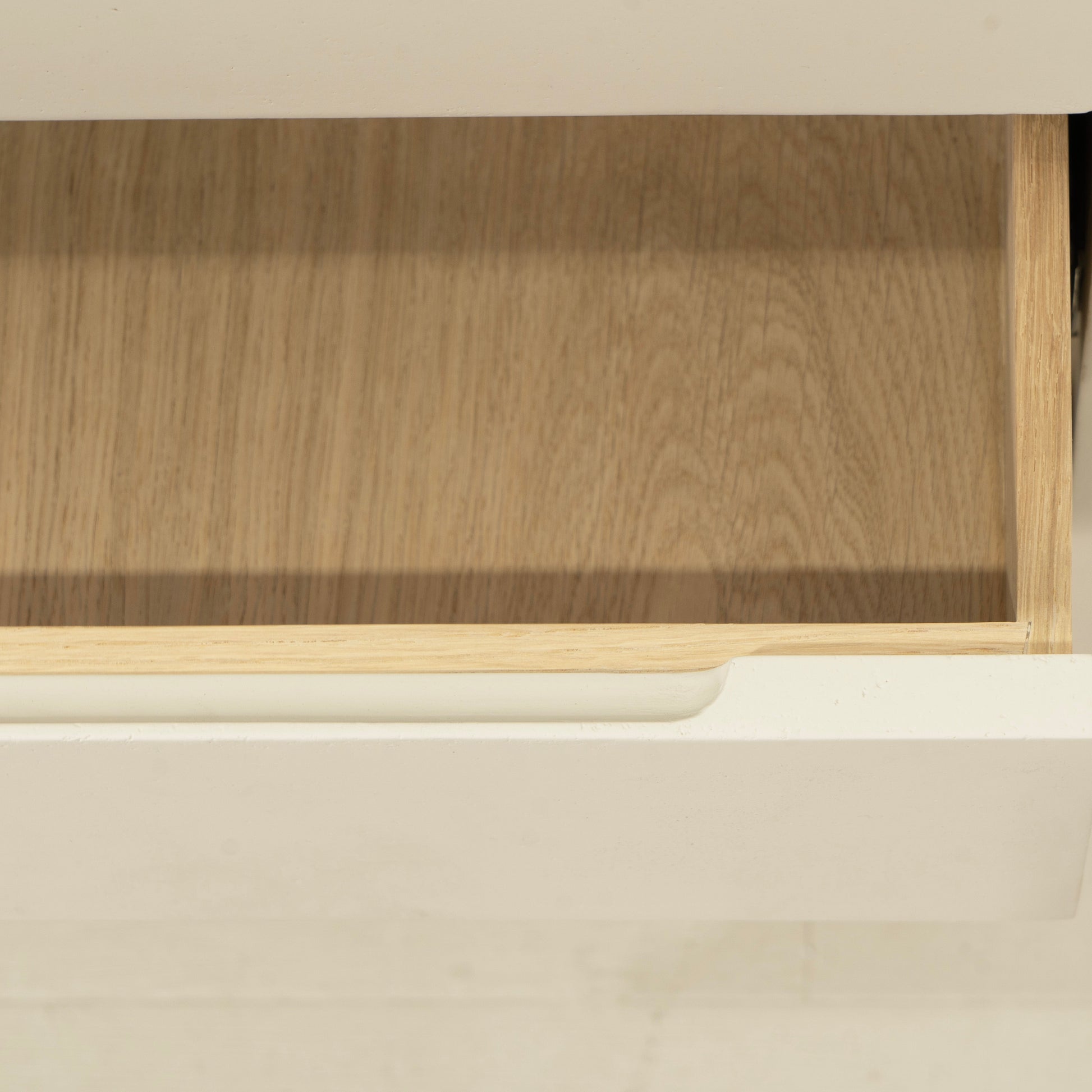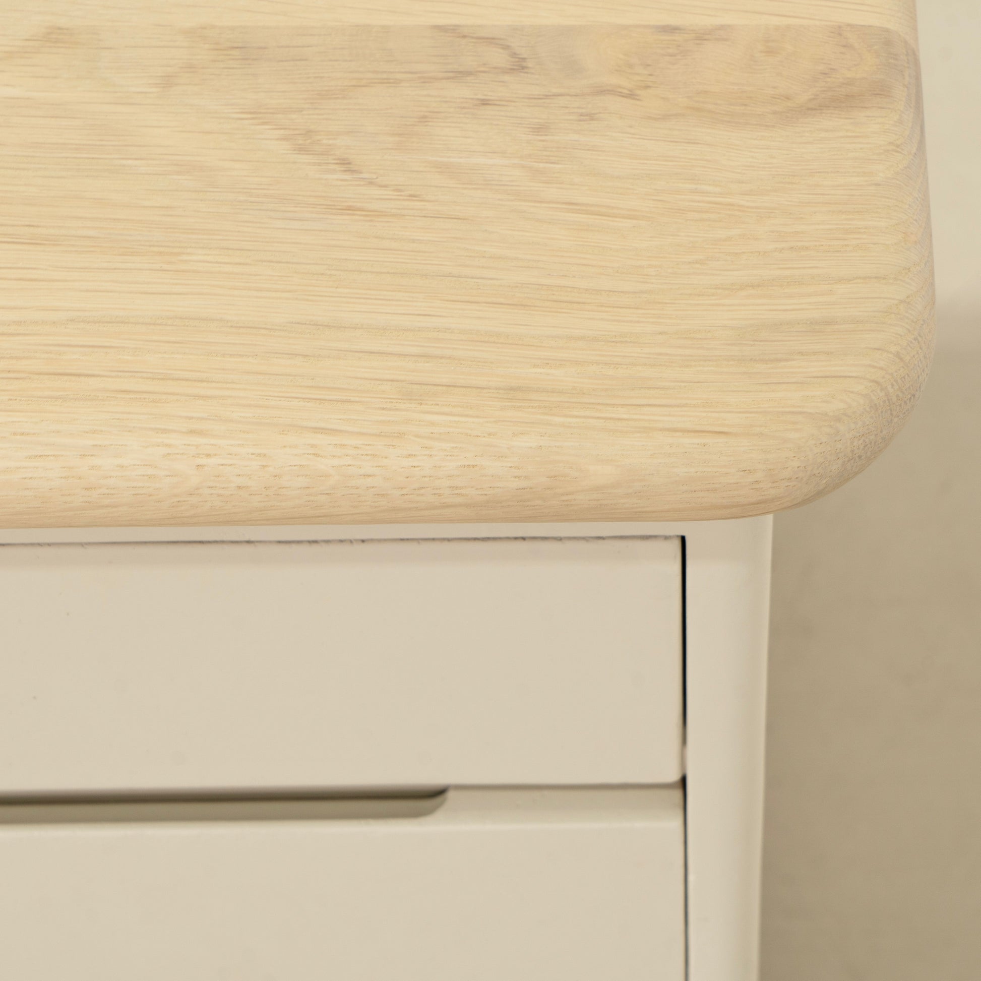 Variante 1 - Blanc plage (dessus) en chêne massif avec bord arrondi, plâtre calcaire (base) en étain Revere