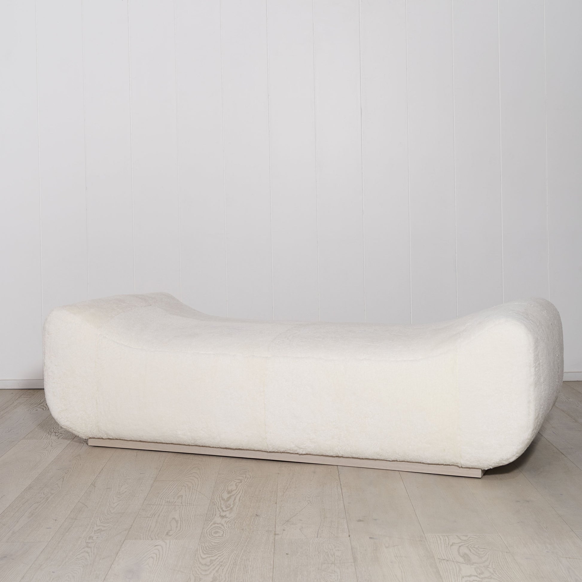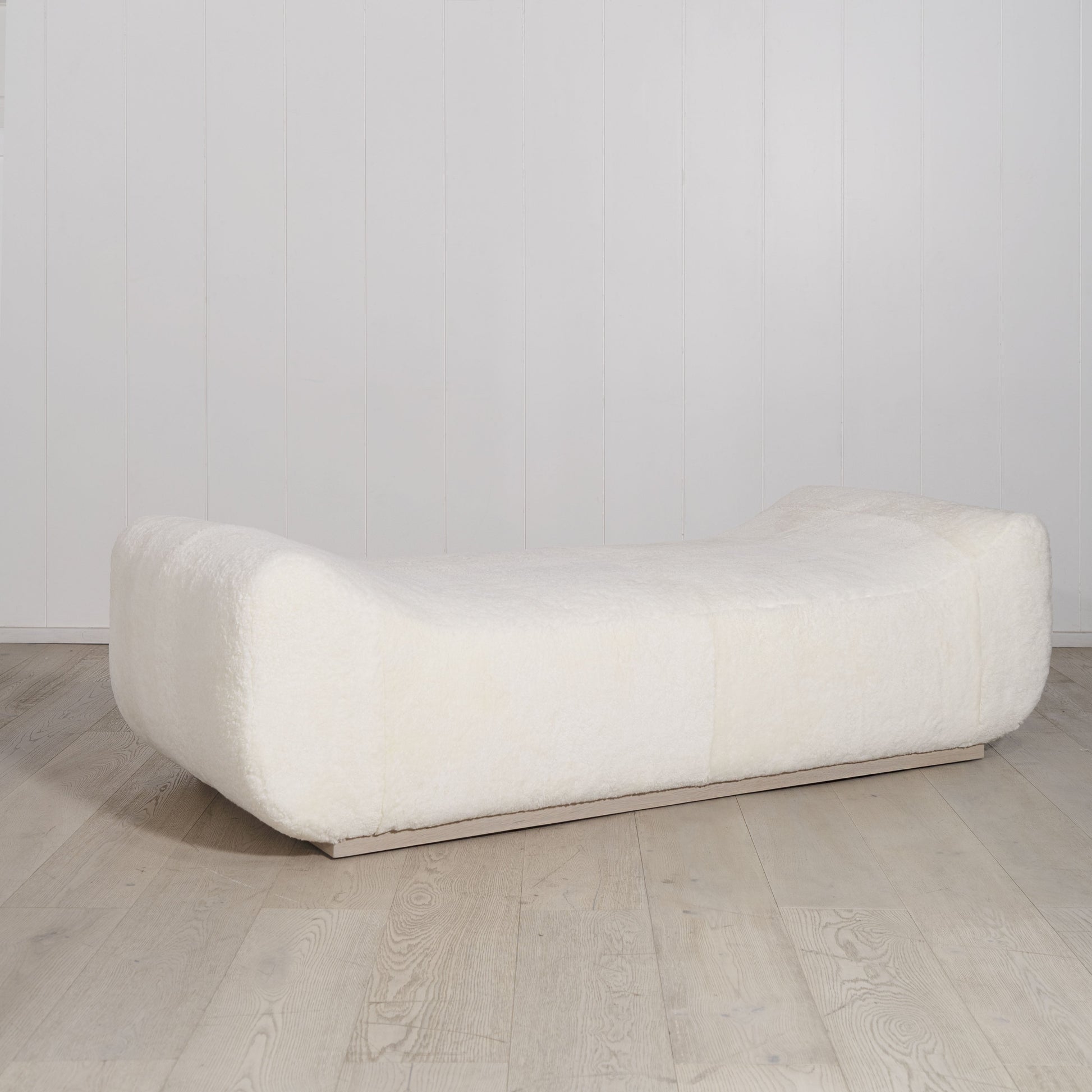 Variante en vedette : Présenté en peau lainée ivoire. Chêne finition sable.
